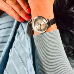 Damenuhr mit Lederarmband in Silber